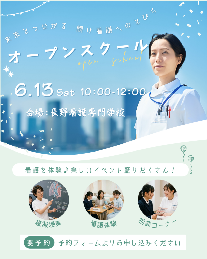 当日は教育内容の紹介に加え、実際の看護技術に触れていただく体験プログラムも用意しております。本校の教育環境を直接ご確認いただける機会ですので、ぜひご参加ください。