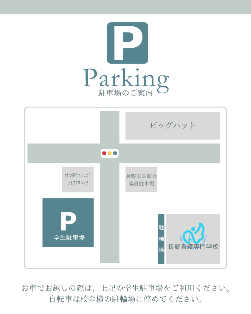 • 駐車場完備: お車でお越しいただけます。下記の場所に駐車をお願いします。